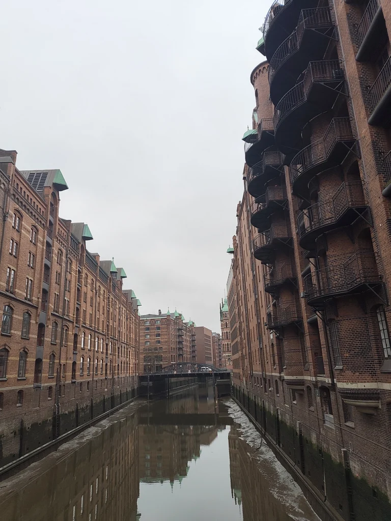 Vom Überseequartier laufen wir hinüber in die Speicherstadt. Der Boulevard wird leiser, die Fassaden wechseln von Glas zu Klinker, unter den Schuhen knarzen Bohlenwege, links und rechts Fleete mit dunklem Wasser. Nach wenigen Minuten fühlt sich Hamburg an wie eine zweite Stadt – nur ohne lange Anfahrt.