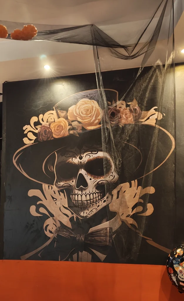 Zwischen all den portugiesischen Lokalen entscheiden wir uns bewusst gegen die Fischplatte – und landen im Casa del Burrito. Genau die richtige Abzweigung: Día-de-los-Muertos-Deko in bunt, Kerzen, kleine Details, dazu ein Raum, der nicht gedrängt wirkt. Es ist noch früh, also angenehm ruhig; der Service ist aufmerksam, ohne zu kleben.