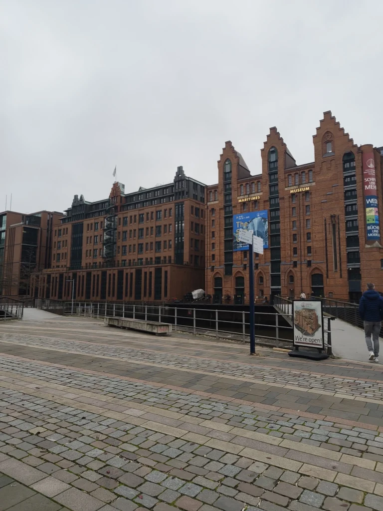 Von dort sind es nur noch wenige Minuten zum Kaispeicher B – heute das Internationale Maritime Museum (IMMH) an der Koreastraße 1. Je nach Fotostopps brauchen wir 20–25 Minuten. Es ist ein kleiner Lehrpfad in Echtzeit: Klinker → Stahl → Wasser → Glas. Anders gesagt: Hamburg im Gehen lesen, statt es nur zu durchqueren.